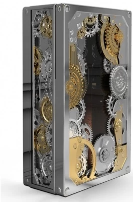 Эксклюзивный сейф Boca Do Lobo Baron Silver станет поистине поразительным подарком благодаря уникальной отделке: викторианский футуристический стиль с влиянием стимпанка воплощён тут введением декоративных элементов в виде деталей часового механизма, намекая на одно из возможных применений сейфа – хранение коллекционных часов. Обшивка корпуса в стиле «часы» создаётся массивом красного дерева, обшитого полированной и никелированной латунью со вставками чёрного бархата. Эта необычная отделка придаёт сейфу впечатляющий и крайне эффектный вид, превращая его из предмета функционального в подлинное произведение искусства, которое украсит и оживит собою любой интерьер.